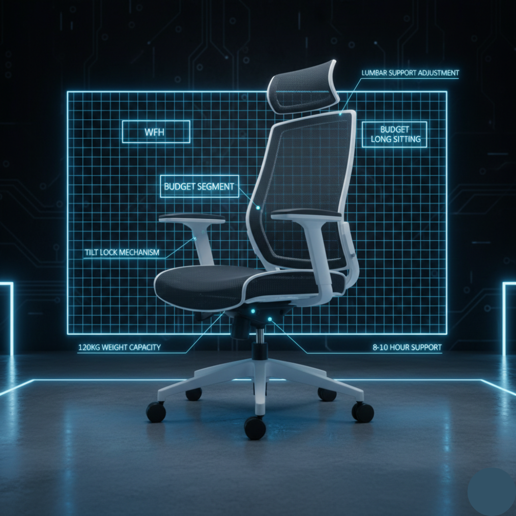 “Best ergonomic chair for long work hours under ₹10,000.”