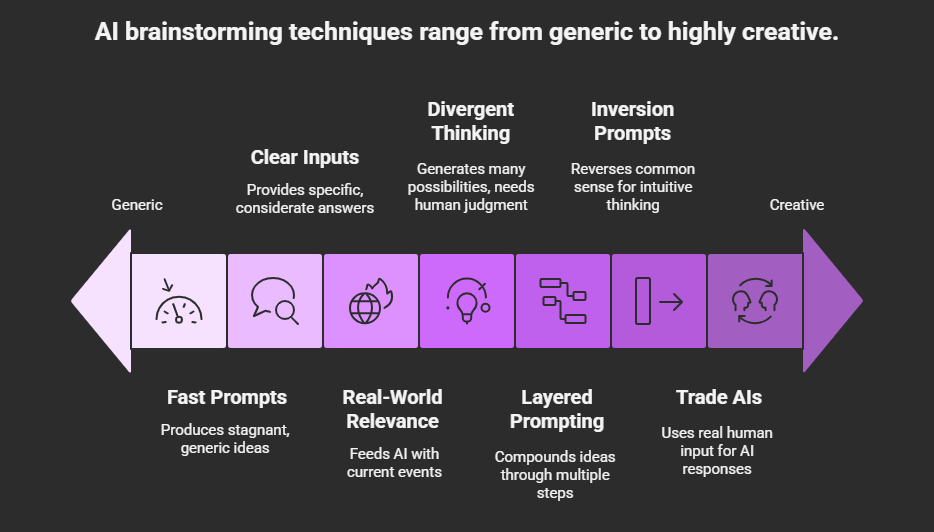 AI brainstorming environments cannot be created equally. Various tools and methods exist that will open up various kinds of thinking and assist in avoiding being stuck in a rut.