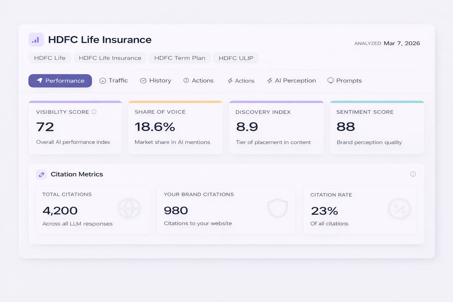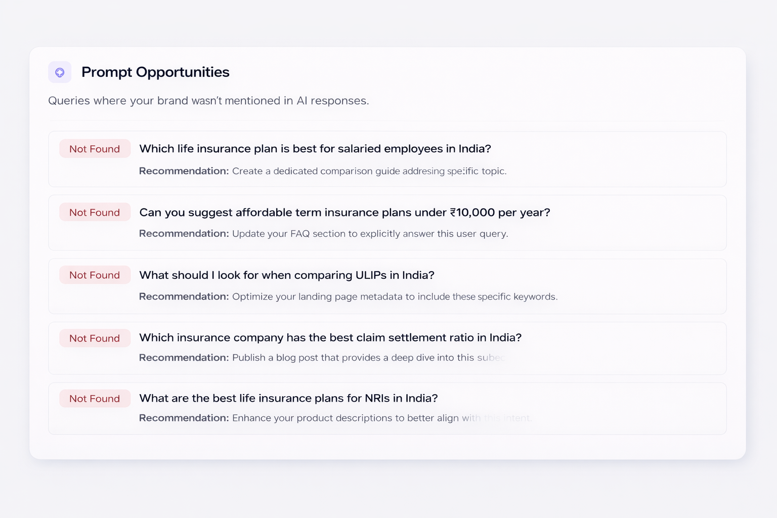 HDFC Life's 99.97% and Axis Max Life's 99.79% claim settlement ratios are not just operational achievements — they are marketing assets that actively improve these brands' AI visibility scores across comparison and trust-signal queries. For insurers further down the claims performance table, closing this gap is not just an operational priority; it is a brand strategy imperative.